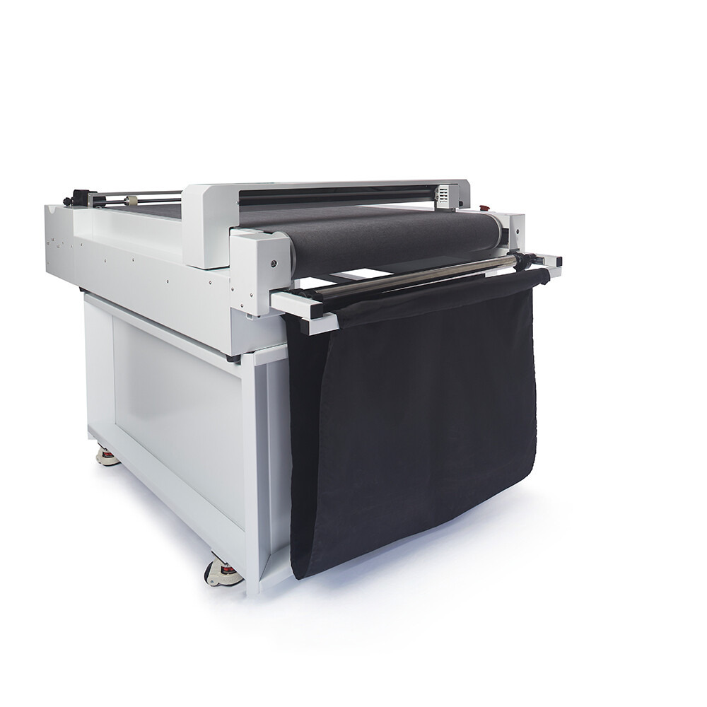 Geïntegreerde transportband: voert automatisch bedrukte DTF-media vanaf een rol en snijdt deze nauwkeurig — dat bespaart handwerk en verkort doorlooptijden.